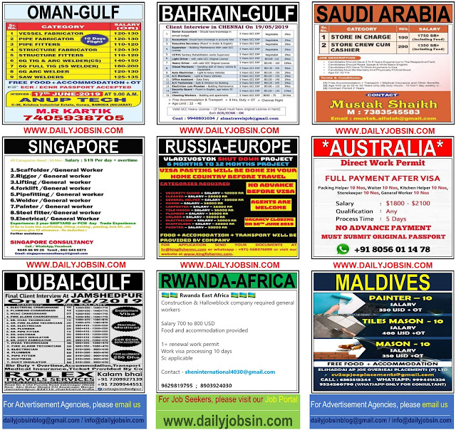 Reminder Note: Before applying any job or contacting agencies or direct companies from our website, candidates are advised to check & confirm about that agency or company genuineness to secure your time, money and future and in-case of any fraud is done by any agency after our several reminders our website shall not be responsible at all, thank you for your alertness.